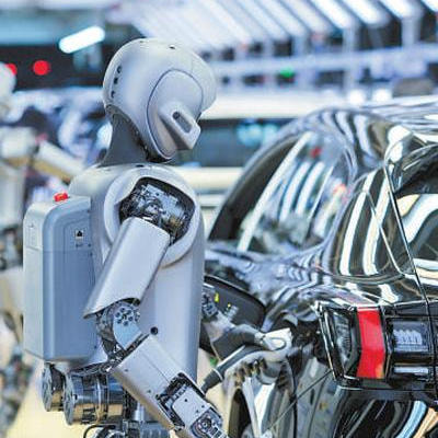 焊接机器人在航空制造中,完成飞机机身的焊接作业。